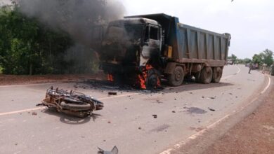 BREAKING : स्कूल जा रहे बाइक सवार बच्चों को हाईवा ने मारी ठोकर, मौके पर एक की मौत…ग्रामीणों ने वाहन में लगाई आग