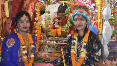 श्रीकृष्ण की अनेक लीलाओं में श्रेष्ठ रास लीला कथा में रूकमणी विवाह राधाकृष्ण के वेशधारण कर मनमोहक झांकी