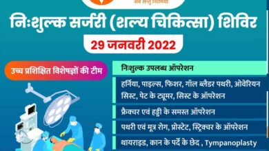 अग्रवाल नर्सिंग होम बसना में निःशुल्क सर्जटी (शल्य चिकित्सा शिविर 29 जनवरी 2022 को योजना जनवरी 2022 तक लागू है आप अधिक जानकारी और रजिस्ट्रेशन के लिए संपर्क कर सकते हैं