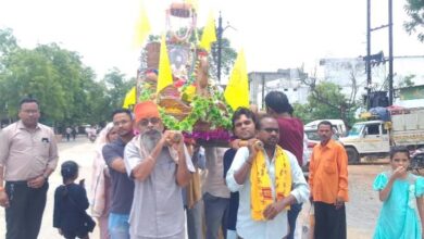 बसना: विश्व हिन्दू परिषद ने गुरू पादुका पालकी यात्रा का बसना मे किया स्वागत