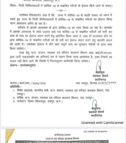 मिली जानकारी के अनुसार अब बालको, NHMMI और अपोलो बिलासपुर में भी कोरोना मरीजों का उपचार हो सकेगा। निजी अस्पतालों में उपचार के लिए मरीजों को उपचार का खर्च खुद वहन करना होगा।