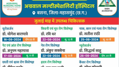 अग्रवाल नर्सिंग होम बसना में विशाल ऑपरेशन शिविर 1 से 3 अगस्त तक,जिसमे रहना, खाना, दवाइयां सभी नि:शुल्क