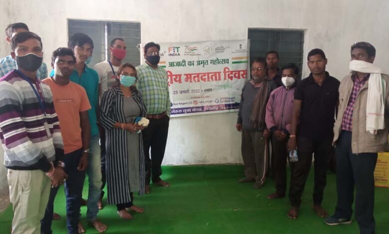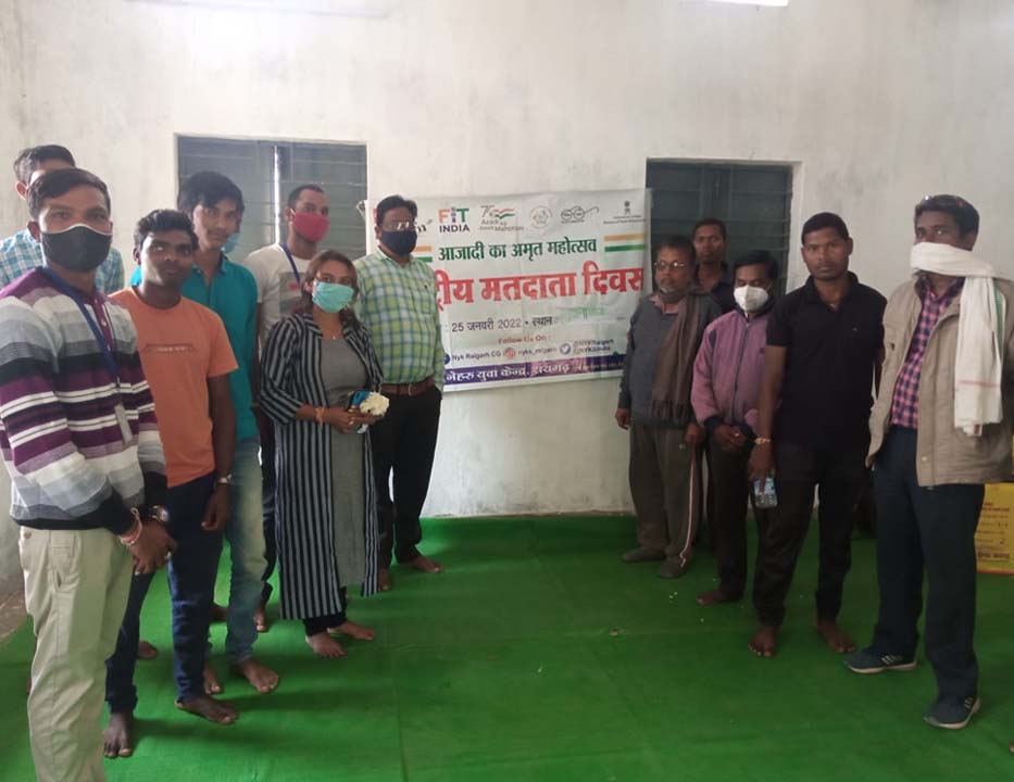 नेहरू युवा केंद्र रायगढ़ द्वारा लैलूंगा ब्लाक के ग्राम पंचायत गहनाझरियां में कोविड -19 के नियमों को पालन करते हुए मतदाता दिवस मनाया गया