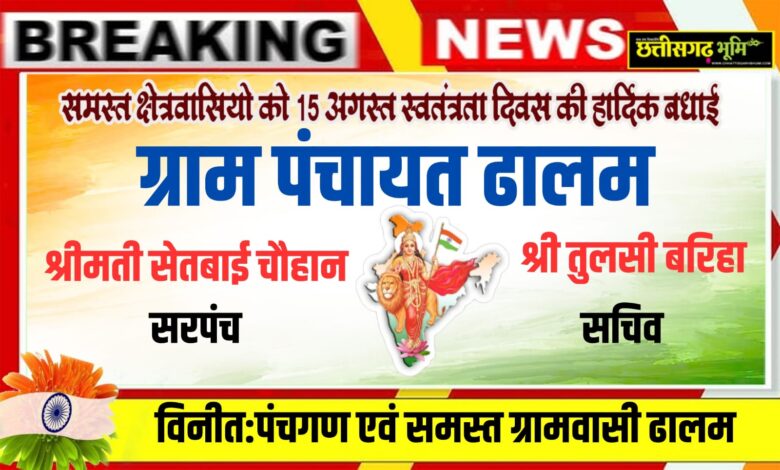 समस्त क्षेत्रवासियों को 15 अगस्त स्वतंत्रता दिवस की हार्दिक शुभकामनाएं एवं बधाई ग्राम पंचायत ढालम
