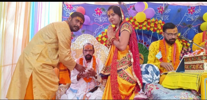 भागवत कथा में सुनाया श्रीकृष्ण-रुक्मणी विवाह प्रसंग, श्रद्धालुओं ने की पुष्पवर्षा
