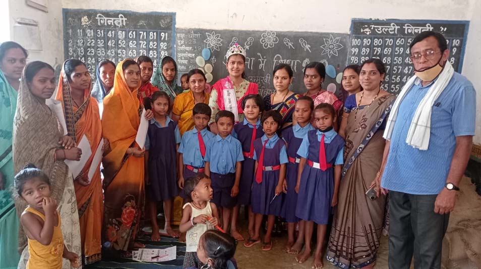 उसी के अनुरूप घर में भी माता बच्चों को अपना नित्य कार्य करते हुए जोड़ना घटाना रंगों की पहचान, आकृति की पहचान, विभिन्न गतिविधियों के द्वारा बताएं। कार्यक्रम में 9 काउंटर के माध्यम से सपोर्ट कार्ड के आधार पर विभिन्न गतिविधियों का आयोजन किया गया। इस दरमियान सबसे बेहतर प्रदर्शन करने वाली छात्रा कुमारी नव्या शर्मा की माता पल्लवी शर्मा को स्मार्ट माता का ताज पहनाकर सम्मानित किया गया।
