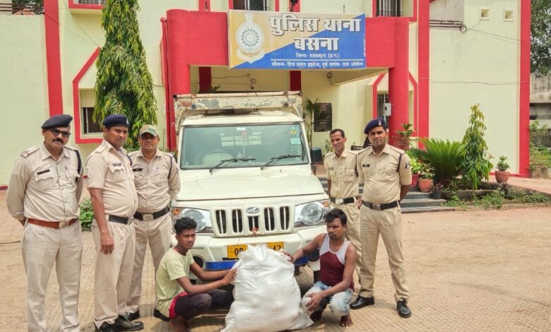 महासमुंद/बसना: पुलिस अधीक्षक महासमुन्द भोजराम पटेल द्वारा समस्त थाना/चौकी प्रभारियों को नशीली पदार्थ, अवैध शराब तथा अवैध मादक पदार्थ गांजा की तस्करी करने वाले लोगो के खिलाफ कार्यवाही तथा सघन चेकिंग अभियान करने हेतु निर्देशित किया गया था व जिले में लगातार अवैध मादक पदार्थ /अवैध शराब के खिलाफ लगातार कार्यवाही की जा रही है । इसी तारतम्य दिनांक दिनांक 31.07.2022 को ग्राम पलसापाली बैरियर पदमपुर रोड में संदिग्ध वाहनों की चेकिंग की जा रही थी कि तभी ओडिसा पदमपुर रोड की तरफ से एक संदिग्ध महिन्द्रा बोलेरो पिकप वाहन क्रं0 OD 17 V 5442 आते दिखा जिसमें दो व्यक्ति सवार थे