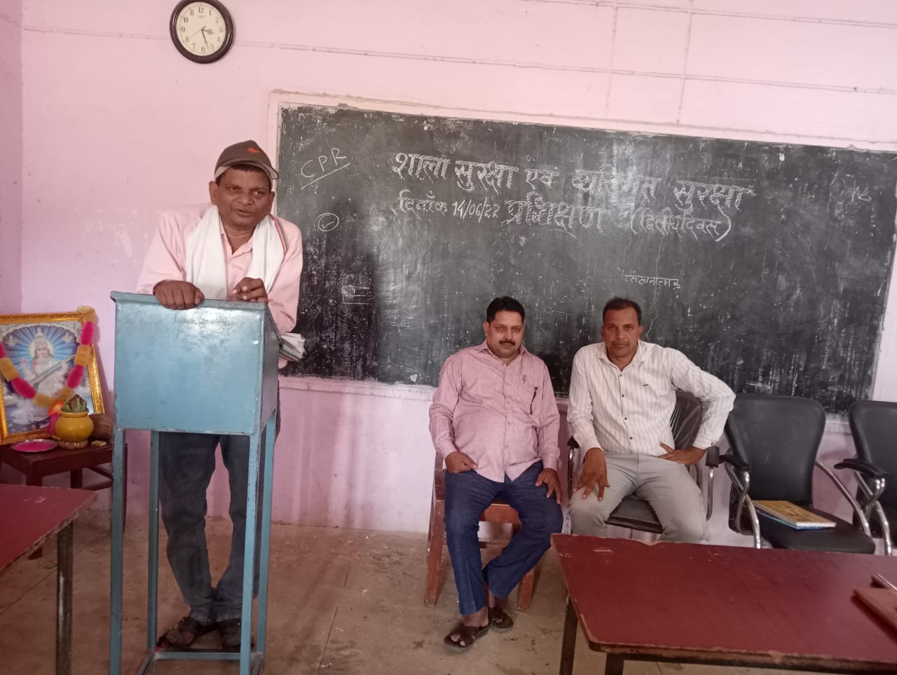 जिसमें बच्चों की सुरक्षा, स्कूल की सुरक्षा, आग ,पानी ,हवा भूकम्प ,जहरीले सर्प, आदि से बचने का उपाय प्रयोग कर बताया। इस प्रशिक्षण में राजेश भोई, दिनेश डडसेना, विष्णु सर, नीरज दास,मीना सहारे, गीतांजली नाग, उषा ठाकुर,सीता साहू ने भी संबोधित किया। पूरे कार्यक्रम में संगीत मय सरस्वती वंदना एवं प्रेरणा गीत सुशील कुमार सिन्हा के द्वारा प्रस्तुत किया गया।
