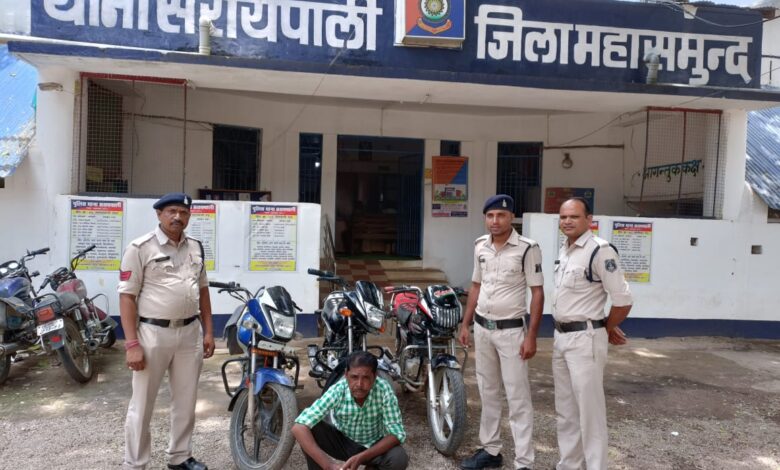 सरायपाली पुलिस की कार्यवाही चोरी हुए 03 मोटर सायकल के साथ 01 आरोपी पुलिस की गिरफ्त में