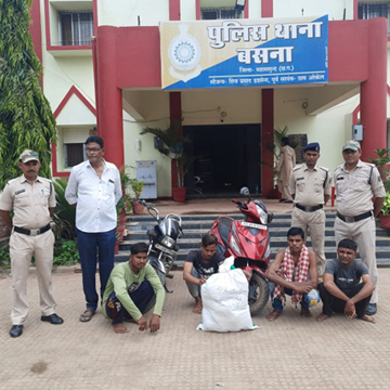 महासमुन्द/बसना: दिनांक 02.08.2022 को जरिये मुखबीर से सूचना मिला की उड़ीसा की ओर से बसना की ओर एक स्कूटी मेस्ट्रो क्रमांक सीजी 06 Q 0295 में दो व्यक्ति तथा उसके साथ एक मोटरसाइकिल स्प्लेंडर प्लस क्रमांक CG04 NH 7396 में दो व्यक्ति कुल चार व्यक्ति सामने स्कूटी वाला पेट्रोलिंग करते पीछे मोटर साइकिल में अवैध मादक पदार्थ गांजा परिवहन करने निकले हैं कि सूचना पर हमराह स्टाफ एवं गवाह के बरोली से खुर्सीपार जाने वाले मार्ग पर खड़े होकर इंतजार कर रहे थे कि उड़ीसा रोड के तरफ से चार व्यक्ति एक मेस्ट्रो तथा एक मोटर साइकिल में एक सफेद बोरी रखें आ रहे थे जो कि अचानक पुलिस पार्टी को देख कर अपनी गाड़ी को रोक दिए और मोड़ने लगे जिसे रोककर पूछताछ किए तो मोटर साइकिल CG04 NH 7396 के चालक ने अपना नाम टीका राम कुर्रे तथा पीछे में बैठे व्यक्ति ने अपना नाम नरेश वर्मा तिल्दा नेवरा का रहने वाला बताएं
