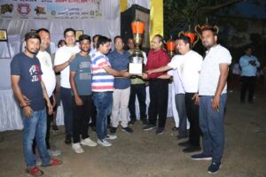 नगर पंचायत पार्षद किशन अग्रवाल ने नीलांचल सेवा समिति के अग्रसेन सुपर किंग्स टीम का नेतृत्व किया।
