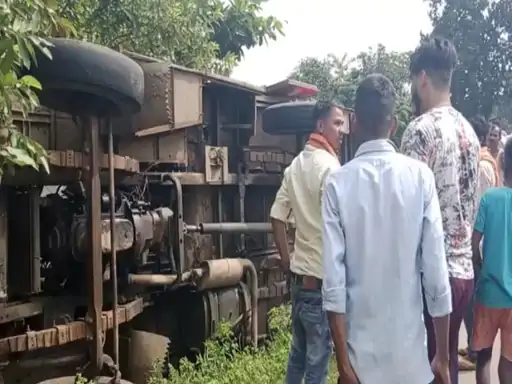 दीवार से टकराकर यात्री बस पलटी हादसे में 15 यात्री हुए घायल