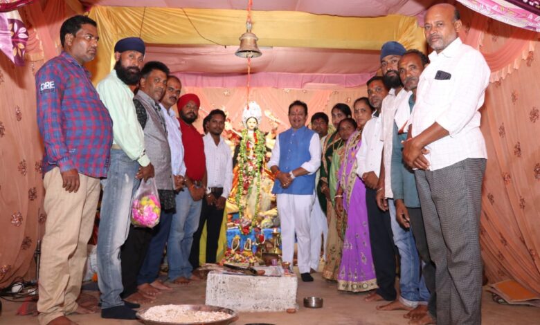 डुमरपाली. शारदीय नवरात्रि पर्व के पावन अवसर पर नीलांचल सेवा समिति के संस्थापक, नगर पंचायत बसना पूर्व अध्यक्ष एवं भाजपा नेता डॉ.सम्पत अग्रवाल ने अंचल के डुमरपाली पहुँचकर सर्वप्रथम जगजननी माँ दुर्गा की पुजा अर्चना कर क्षेत्रवासियों की सुख समृद्धि एवं खुशहाली की कामना की। तत्पश्चात माँ दुर्गा समिति सदस्यों ने डॉ.सम्पत अग्रवाल का पुष्पहार से स्वागत सम्मान किया।