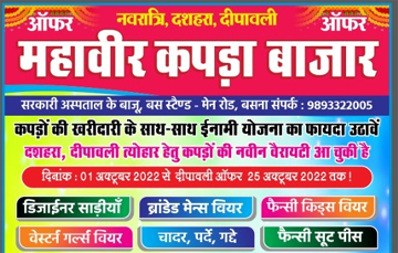 दीवाली ऑफर: महावीर कपड़ा बाजार बसना में कपड़ो की नवीन वैरायटी के साथ निश्चित उपहार का फायदा उठाए