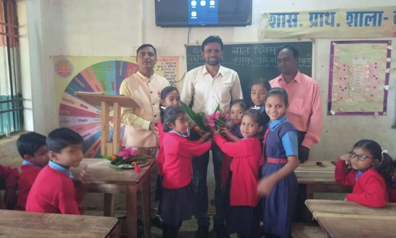 बसना: शासकीय प्राथमिक शाला करनापाली में बाल दिवस के अवसर पर नवोदय विद्यालय में चयनित छात्रों को गया सम्मानित