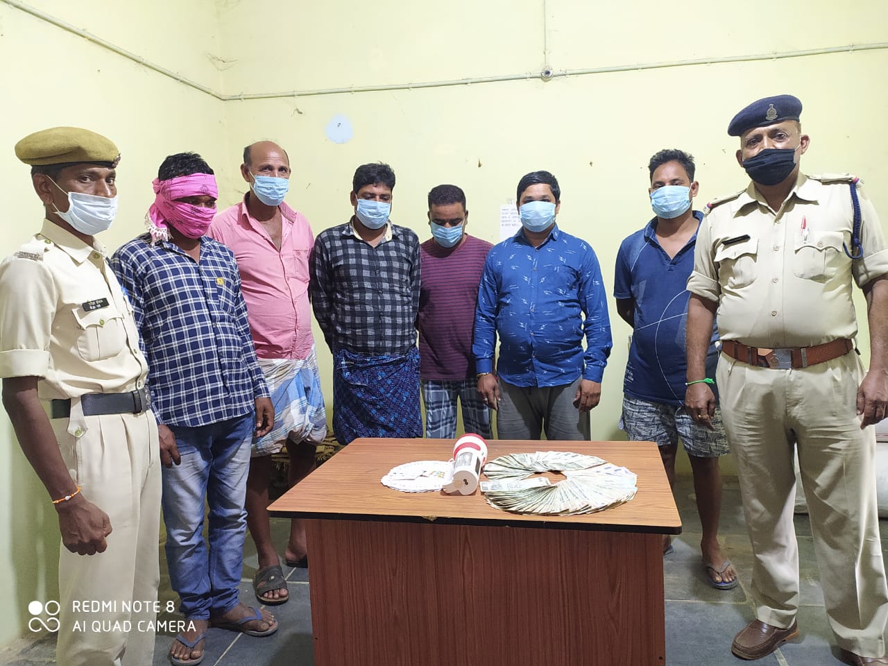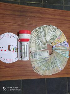 दिनांक 03.08.2020 को सायबर सेल के कर्मचारीओं द्वारा सूचना दी गयी कि कुटेला के पास पचरी घाट में कुछ व्यक्ति हार जीत का दांव लगाकर 52 पत्ती तास से काटपत्ती नामक जुआ खेलते पकडे गये है कि सूचना मिलते ही सा0उ0नि0 बसन्त पाणिग्राही, हमराह स्टाफ आर0 59,556 एवं गवाहो को लेकर मौके पर जाकर तस्दीक किया मौके पर सायबर सेल के आरक्षक हेमन्त नायक,संदीप भोई,युगल पटेल,योगेंद्र दुबे,ललित यादव,त्रिनाथ प्रधान हाजिर मिले एवं जहां आरोपीगण द्वारा लाकडाउन का उल्लंघन करते हुये झुण्ड बनाकर तालाब के पचरी घाट में एक बजारू चार्जिंग लाईट में 52 पत्ती तास से हारजीत का दांव लगाकर काट पत्ती नामक जुआ खेलते पकडे गये थे कि जुआरियान 1- सीयाराम चौधरी पिता जीवनलाल चौधरी उम्र 39 वर्ष साकिन कुटेला थाना सरायपाली, 2- रामलाल पटेल पिता पदमन पटेल उम्र 58 वर्ष साकिन कुटेला थाना सरायपाली, 3- हीरालाल यादव पिता ब्रम्हा यादव उम्र 40 वर्ष साकिन कुटेला सरायपाली, 4- राजेश साहू पिता शंभुलाल साहू उम्र 31 वर्ष साकिन कुटेला थाना सरायपाली, 5- दिलीप मांझी पिता झप्पीलाल मांझी उम्र 39 वर्ष साकिन कुटेला थाना सरायपाली, 6- खेमराज चौधरी पिता लक्ष्मण चौधरी उम्र 41 वर्ष साकिन जोगनीपाली थाना सरायपाली जिनके पास एवं फड से कुल जुमला 24,110व रूपये एवं 52 पत्ती तास तथा बजारू चार्जिंग लाईट को मुताबिक जप्ती पत्रक के समक्ष गवाहन जप्त किया गया ।