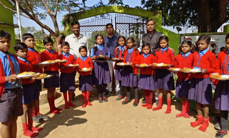 बसना: शासकीय प्राथमिक शाला करनापाली में मध्याह्न भोजन योजना के अंतर्गत बच्चों को दिये जा रहे भोजन