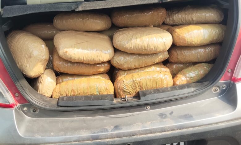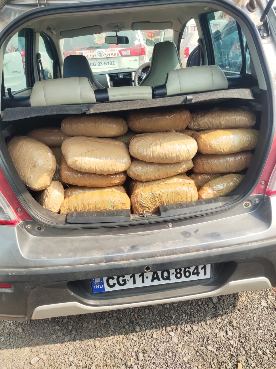 जप्त सम्पत्ति – 1- 100-100ग्राम का दो सैम्पल पैकेट सीलबंद 2- एक नग प्लास्टिक बोरी मे भरी 29 किलो 800ग्राम मादक पदर्थ गांजा सीलबंद कीमती 6,00000 रूपये, 2- एक ग्रे कलर की मारूती सुजुकी सेलेरियो एक्स कार क्रमांक CG 11 AQ 8641 पुरानी इस्तेमाली जिसका चेचिस नंबर MA3ETDE1SOO552299 इंजन नंबर K10BN1824706 कीमती 2,00000 कुल जूमला 8,00000 रूपये।