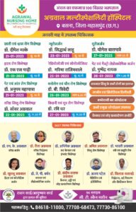 बसना क्षेत्रवासियों को और कही जाना नहीं पड़ेगा अग्रवाल नर्सिंग होम बसना में जटिल से जटिल बिमारियों और सर्जरी की न्यूनतम दर पर बेहतर इलाज किया जा रहा है। साथ ही राशन कार्ड /आयुष्मान कार्ड द्वारा निःशुल्क ईलाज की सुविधा भी है.