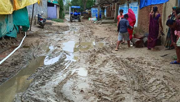 गांव के लोगो ने बताया कि कई वर्षो से सड़क बदहाली का शिकार हो चुकी है। नालियों नहीं होने से घरों पानी जा रहा है।और बड़े-बड़े गड्ढे हो चुके हैं। कीचड़ युक्त यह सड़क अब इस गांव की पहचान बन चुकी है।