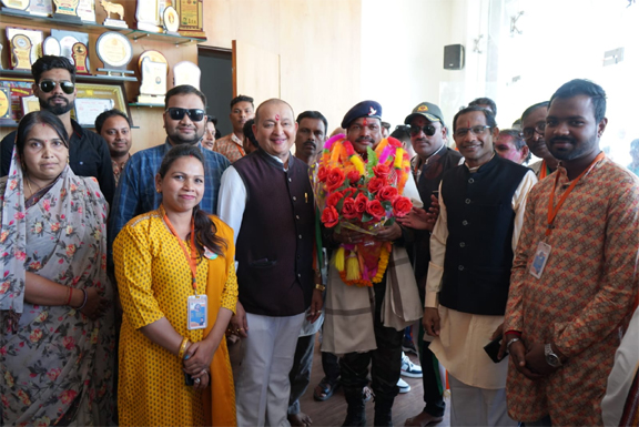 बसना। 24 साल देश सेवा कर जब आर्मी का जवान अपने घर पहुंचा। तब सर्वप्रथम नीलांचल सेवा समिति मुख्यालय में नीलांचल सेवा समिति के संस्थापक एवं नगर पंचायत बसना पूर्व अध्यक्ष भाजपा नेता डॉ. सम्पत अग्रवाल ने उनका भव्य स्वागत किया। बैंड बाजा की धुन पर क्षेत्रवासियों ने जमकर थिरके। भारत माता की जय का नारा भी लोग लगाये।