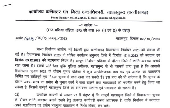 महासमुंद: कलेक्टर एवं जिला निर्वाचन अधिकारी ने ली प्रेस वार्ता,जिले में द्वितीय चरण अंतर्गत मतदान 17 नवम्बर को,जिले में 144 धारा लागू