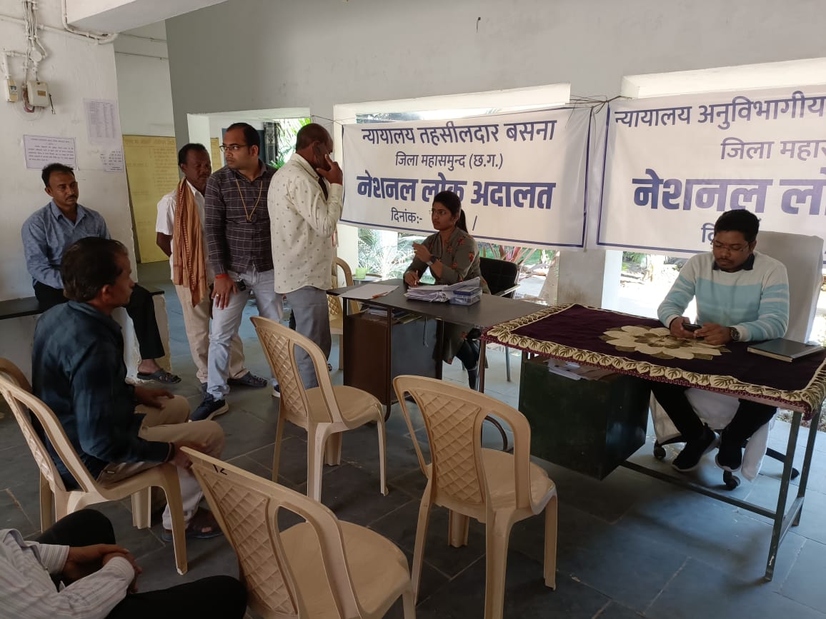 बसना :राष्ट्रीय व राज्य विधि सेवा प्राधिकरण की सूचना के अनुसार अनुविभागीय अधिकारी (रा.) रविराज ठाकुर,तहसीलदार नमिता मारकोले एवं नायब तहसीलदार बसना ललित सिंह के मार्गदर्शन में तहसील न्यायालय बसना में राष्ट्रीय लोक अदालत का आयोजन 16 दिसंबर को सुबह 10.30 से 4:00 बजे तक किया गया है।जिसमें दाखिल पूर्व मामले व न्यायालय में लंबित दाण्डिक प्रकरणो से सम्बंधित मामलो की सुनवाई की गई।
