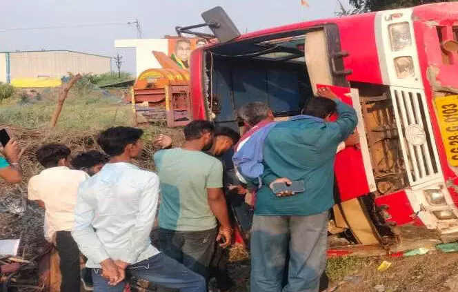 बाराती बस अनियंत्रित होकर पलटी ,13 बराती घायल