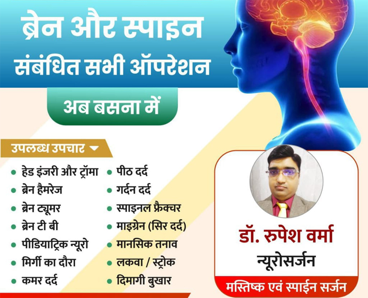 अग्रवाल नर्सिंग होम बसना में 04 अगस्त को ब्रेन एवं स्पाइन रोग विशेषज्ञ न्यूरोसर्जन डॉ. रुपेश वर्मा उपस्थित रहेंगे आप परामर्श के लिए संपर्क कर सकते हैं
