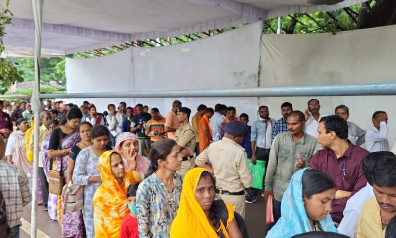 रायपुर : रिमझिम बारिश बीच जनदर्शन में मुख्यमंत्री से मिलने, उनसे अपनी समस्याएं बताने और उनके समाधान के लिए बड़ी संख्या में लोग मुख्यमंत्री निवास पहुचें।