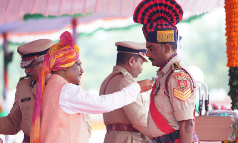 रायपुर : पुलिस परेड ग्राउंड में आयोजित स्वतंत्रता दिवस समारोह के मुख्य आयोजन में मुख्यमंत्री विष्णुदेव साय ने 46 पुलिस अधिकारियों और जवानों का उत्कृष्ट सेवा के लिए पुलिस पदकों से सम्मानित किया। साय ने पुलिस वीरता पदक से 26, राष्ट्रपति पुलिस पदक से 02, सराहनीय सेवा सुधार पदक से 2 और राज्य स्तरीय एवं पुलिस महानिदेशक पदकों से 5 अधिकारी-कर्मचारियों को अलंकृत किया।