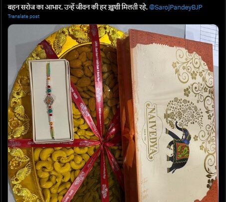 राखी मिलने पर पूर्व सीएम ने सरोज पांडे का आभार जताया है। उन्होंने अपने सोशल मीडिया अकांउट एक्स पर लिखा कि “हर वर्ष की तरह, मेरी बहन सरोज पांडेय ने रक्षाबंधन पर राखी के साथ अपना स्नेह भेजा है। बहन सरोज का आभार.।उन्हें जीवन की हर खुशी मिलती रहे।”