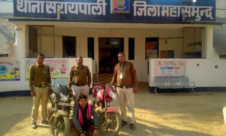 सरायपाली : पुलिस अधीक्षक महासमुंद धर्मेन्द्र सिंह के निर्देशन में अतिरिक्त पुलिस अधीक्षक आकाश राव गिरेपुंजे एवं एसडीओपी सरायपाली अभिषेक केशरी के मार्गदर्शन में जिला महासमुंद के अपराध एवं अपराधिक गतिविधियों पर अंकुश लगाने हेतु निर्देशित किया गया था इसी क्रम में थाना प्रभारी आशीष वासनिक को दिनांक 20/12/2022 को सूचना मिला की घड़घड़ी मुड़ा बालसी निवासी उदयराम बंजारा नाम का व्यक्ति चोरी की मोटरसाइकिल रखकर बिक्री हेतु ग्राहक तलाश रहा है.