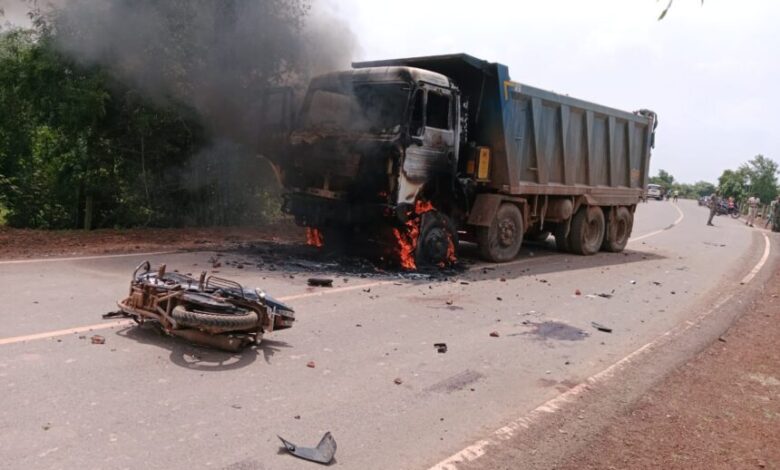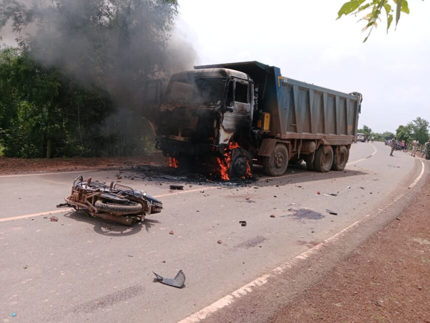 BREAKING : स्कूल जा रहे बाइक सवार बच्चों को हाईवा ने मारी ठोकर, मौके पर एक की मौत…ग्रामीणों ने वाहन में लगाई आग