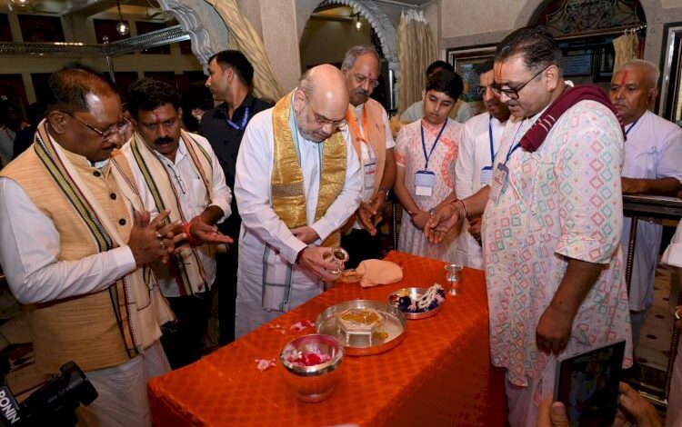 रायपुर :- देश के गृहमंत्री अमित शाह शनिवार को अपनी पत्नी सोनल शाह और प्रदेश के मुख्यमंत्री विष्णु देव साय के साथ नवापारा शहर से लगे चम्पारण धाम पहुंचे. यहां उन्होंने चंपेश्वर महादेव में जलाभिषेक किया और महाप्रभु वल्लभाचार्य के दर्शन किए. गृहमंत्री अमित शाह इस मंदिर में वर्ष 2001 में भी अपनी माताश्री के साथ दर्शन करने पहुंचे थे.दर्शन के बाद वे राजधानी रायपुर के लिए हेलीकॉप्टर से रवाना होंगे. बता दें कि चंपारण वल्लभाचार्य की प्राकट्य स्थली है, लिहाजा गुजराती समाज के लोग पूरे सालभर यहां लाखों की संख्या में आते रहते हैं.