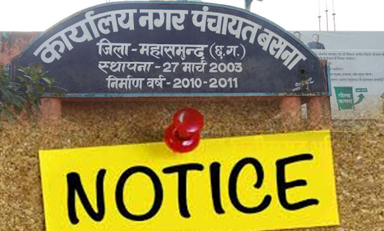 आपको बतादे नगर पंचायत बसना के आदेश में क्या है- आपके द्वारा बनाई गई है कालोनी जिसकी शिकायत प्राप्त हुई है। अतः आपके द्वारा कालोनाईजर एक्ट के तहत क्या अनुमति ली गई है या प्रक्रियाधीन है तो आप अपने कालोनी से संबंधित समस्त दस्तावेज नक्शा खसरा पालिका की अनुमति, नगर निवेश की अनुमति, ले-आउट की कॉपी सूचना प्राप्ति के 02 दिवस के भीतर इस कार्यालय में आकर अपने समस्त दस्तावेजों का जांच करावें। ताकि न की स्थिति में वैधानिक कार्यवाही करते हुए समस्त कालोनियों का नियमितिकरण किया जा सके । अथवा इस पत्र के प्राप्ति उपरांत आपके द्वारा अगर कार्यालय में उपस्थित होकर अपने दस्तावेजों का परीक्षण ना कराया गया तो यह माना जावेगा की आपके द्वारा अवैध कालोनी बनाई गयी है\एवं पालिका द्वारा एकपक्षिय कार्यवाही की जावेगी जिसकी समस्त जिम्मेदारी आपकी होगी ।