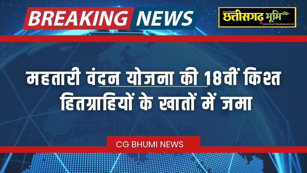 महतारी वंदन योजना की 18वीं किश्त हितग्राहियों के खातों में जमा,छत्तीसगढ़ की महिलाओं को आर्थिक सशक्तिकरण की दिशा में एक और कदम