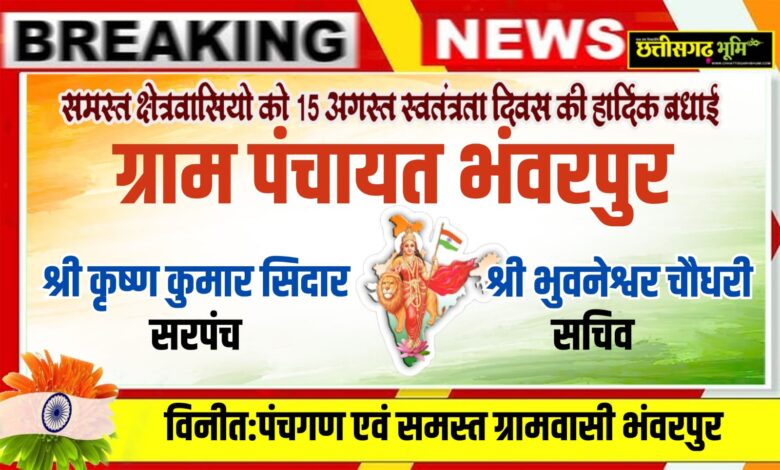 समस्त क्षेत्रवासियों को 15 अगस्त स्वतंत्रता दिवस की हार्दिक शुभकामनाएं एवं बधाई ग्राम पंचायत भंवरपुर