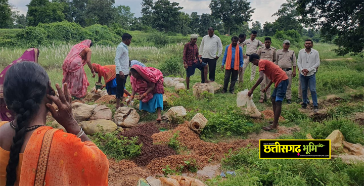 पिथौरा। गांव वालों की सतर्कता से आबकारी विभाग की बड़ी कार्रवाई, 4,800 किलो महुआ लाहन नष्ट