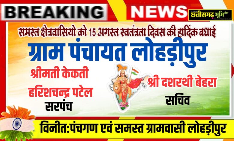 समस्त क्षेत्रवासियों को 15 अगस्त स्वतंत्रता दिवस की हार्दिक शुभकामनाएं एवं बधाई ग्राम पंचायत लोहड़ीपुर