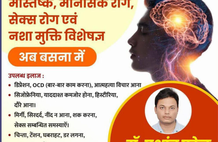 मस्तिष्क,मानसिक रोग,सेक्स रोग एवं नशा मुक्ति विशेषज्ञ अब बसना केअग्रवाल नर्सिंग होम मल्टीस्पेशलिटी हॉस्पिटल में