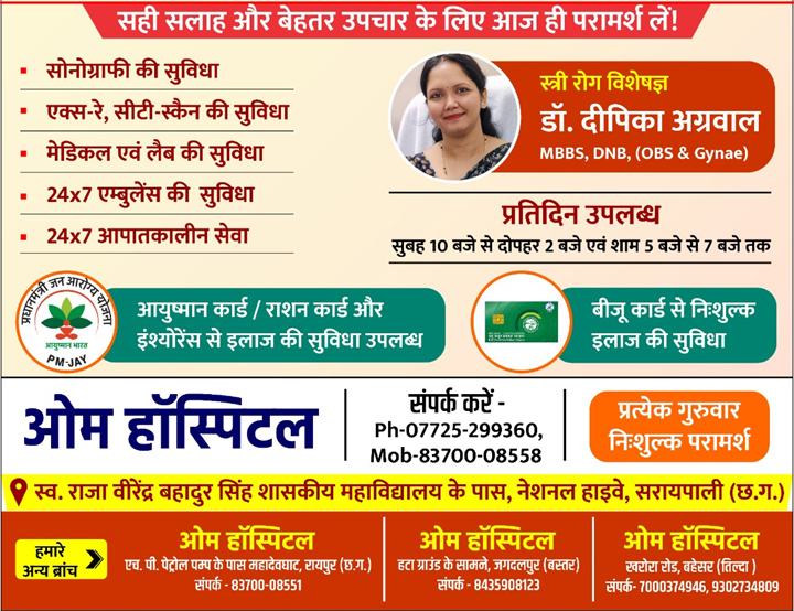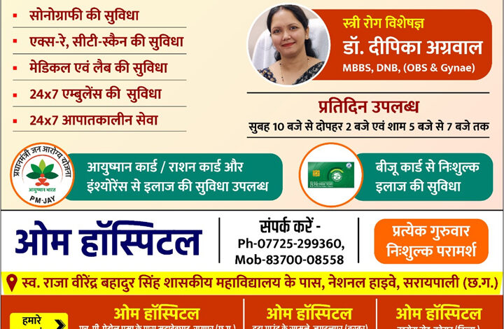 ओम हॉस्पिटल में स्त्री एवं प्रसूति रोगों का संपूर्ण समाधान – अब सरायपाली सहित कई शाखाओं में उपलब्ध