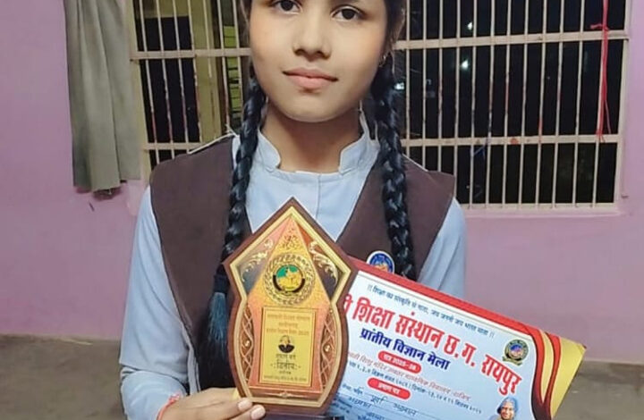 बसना : सरस्वती शिशु मंदिर का कमाल, गणित- विज्ञान मेला में छात्रा पूर्वा अग्रवाल ने जीता दूसरा स्थान