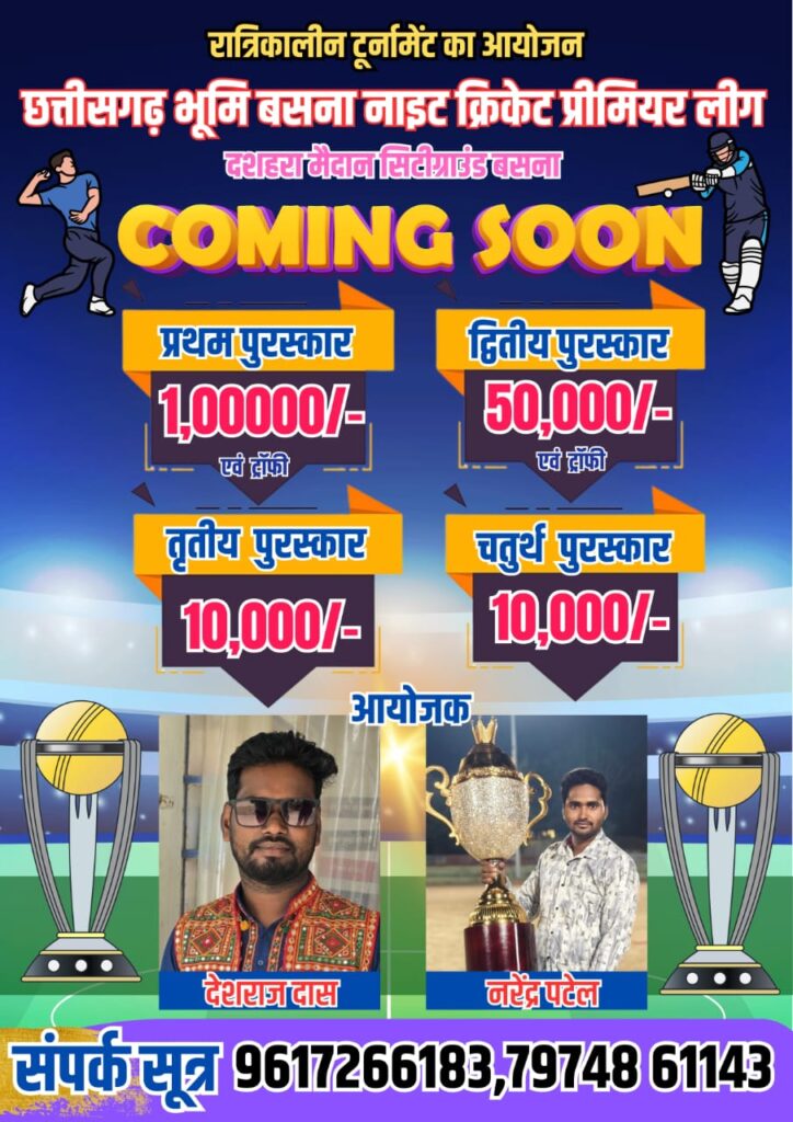 महासमुंद/बसना: जमडी में आदर्श क्रिकेट क्लब द्वारा पांच दिवसीय टेनिस बॉल क्रिकेट टूर्नामेंट का भव्य आयोजन, मुख्य अतिथि रहे मोक्ष कुमार प्रधान