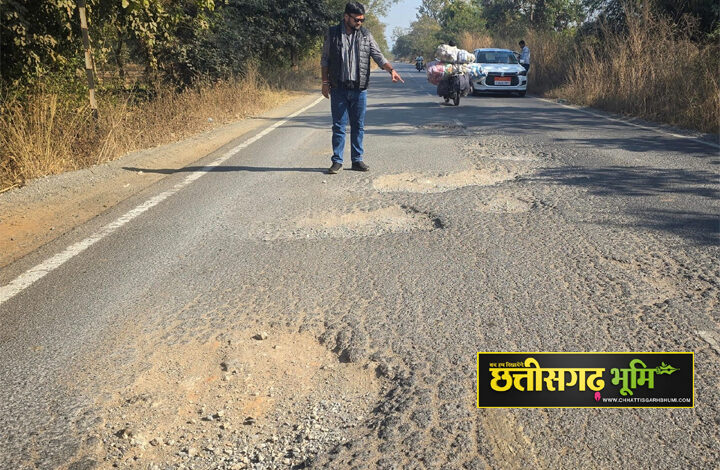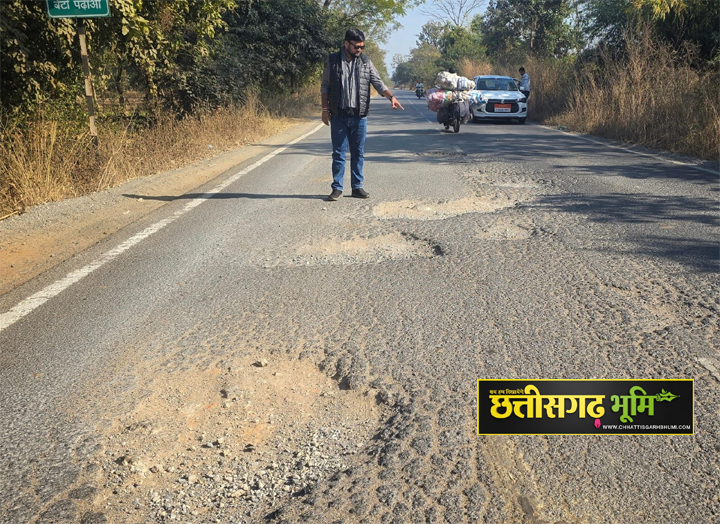 बसना–पदमपुर अंतरराज्यीय मार्ग बदहाल, गड्ढों में तब्दील सड़क बनी हादसों का कारण