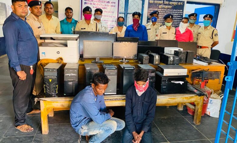 महासमुं/सरायपाली। थाना प्रभारी सरायपाली निरीक्षक वीणा यादव द्वारा तथा थाना स्टाफ द्वारा क्षेत्र के अपराधिक गतिविधियो में संलिप्त व्यक्तियो की गतिविधियो पर सतत निगाह रखी जा रही थी । दिनांक 13/10/2020 को ग्राम कुटेला IEMBH हायर सेकेण्डरी स्कूल में रात्रि में ताला तोड़कर स्कूल अंदर घुस कार्यालय में रखे कम्प्युटर, सीपीयु, सीसीटीवी कैमरा,रैम तथा अन्य सामाग्री तथा दिनांक 28/10/2020 को ग्राम केना के शास0 उच्च0 माध्य0 विद्यालय के कार्यालय में लगे कम्पयुटर, सीपीयु, सीसीटीवी कैमरा, प्रोजेक्टर तथा अन्य सामाग्री को अज्ञात चोर द्वारा चोरी कर ले जाने की रिपोर्ट पर थाना सरायपाली में अपराध क्रमांक 398/2020, 400/2020 धारा 457,380 भादवि पंजीबद्ध कर विवेचना में लिया गया था।