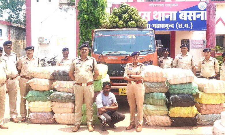केला की आड़ में करोड़ों का गांजा: महासमुंद पुलिस की बड़ी कार्रवाई, 912 किलो से ज्यादा जब्त