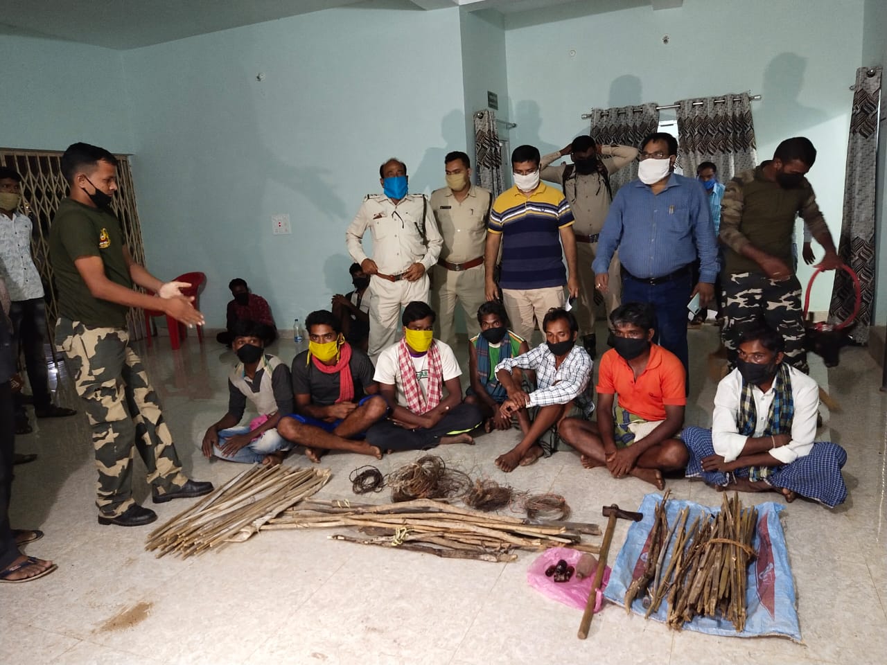 जिसमें आरोपीगण ग्राम किशनपुर निवासी 1 , मखियार यादव पिता परदेशी यादय उस 36 वर्ष किशनपुर के घर से घर से विद्युत तार , हुकिंग करने का बांस , लकड़ी खूटी जप्त 2. गौरीशंकर पिता सन्यासी उन 43 वर्ष , ग्राम रामपुर ( टीपापारा ) को व्दारा बोये बोये गये मूंगफल्ली टिकरा में 01 नग मादा हाथी मृत जप्त 3. सहदेव पिता लाला सन्म 45 वर्ष , ग्राम किशनपुर के भरी मूगफल्ली टिकरा में स्थित विद्युत खबे ( 11 के.व्ही ) पर भरी में कांच शीशी परन र नंगा तार का का छोटा टुकडा लपेटा हुआ जप्त । 4. नरोत्तम साहू पिता जगत साहू , ग्राम किशनपुर से बांस खूटी शिकार में प्रयुक्त जप्त 5 सिरपत पिता पैतराम बरिहा उन्म 27 वर्ष , ग्राम किशनपुर से बांस खूटी शिकार में प्रयुक्त जप्त 6. अमृतलाल पिता हरिराम यादव उम्र 23 वर्ष ग्राम किशनपुर के व्दारा बताये गये घटना स्थल से वन्यप्राणी मृत भालू के अवशेष अंग जप्त 7 अशोक पिता रसिक बुड़ेक ग्राम किशनपुर के घर से बांस की खूटी जप्त ( फरार ) 8 , जयनाथ पिता कसी ग्राम लक्ष्मीपुर के घर से जी.आई.तार एवं बांस खूटी जप्त ( फरार ) 9 , निराकार पिता आशाराम बरिहा , उम्र 45 वर्ष , ग्राम किशनपुर के घर से नंगा विद्युत तार लकड़ी खूटी , कांच शीशी जप्त।
