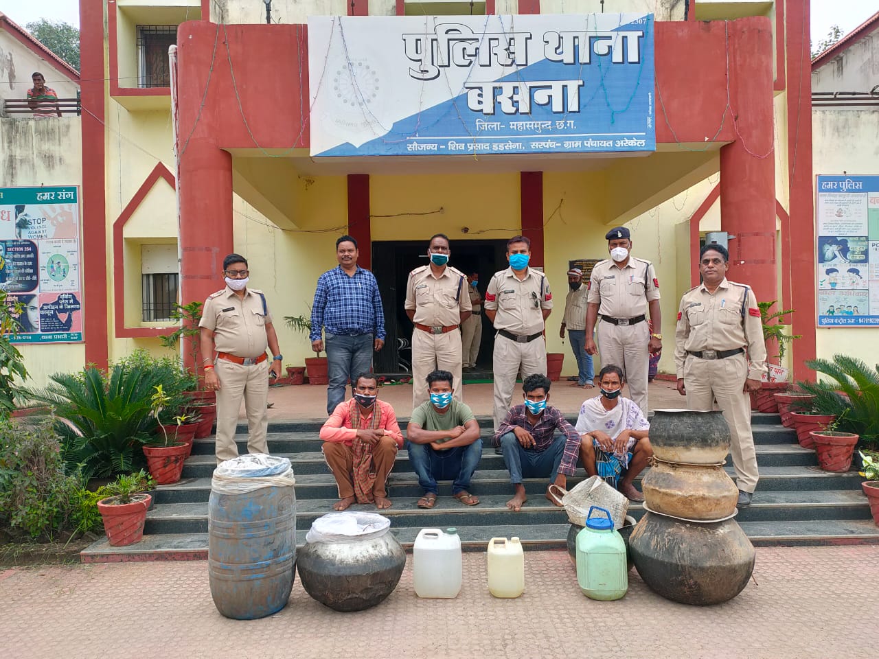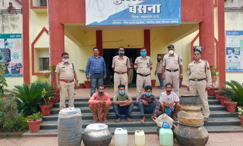 पंडरीपानी कटेल नाला के किनारे अवैध रूप से बिक्री करने महुवा शराब बना रहे चार लोगो को बसना पुलिस ने दबोचा