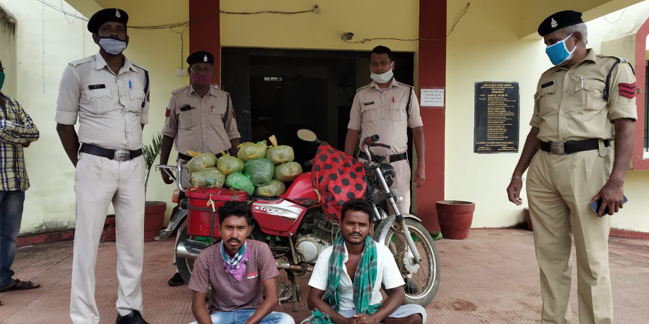 महासमुंद/बसना। पुलिस अधीक्षक प्रफुल्ल कुमार ठाकुर के निर्देशन पर एवं अतिरिक्त पुलिस अधीक्षक श्रीमति मेघा टेंभुलकर व अनुविभागीय अधिकारी सरायपाली विकास पाटले के मार्गदर्शन मे थाना प्रभारी बसना लेखराम ठाकुर के द्वारा मादक पदार्थ गांजा का अवैध बिक्री/परिवहन पर कार्यवाही का मुहिम छेड़ते हुये दिनांक 14/10/2020 को मुखबीर की सुचना पर आरोपीगण – आरोपी – 01. कान्तो जुएड पिता टिकेलाल जुएड उम्र 21 साल निवासी जमला थाना पदमपुर जिला बरगढ उड़ीसा ,02. विश्वजीत जुएड पिता मकारू जुएड उम्र 22 वर्ष निवासी जमला थाना पदमपुर जिला बरगढ उड़ीसा अवैध मादक पदार्थ गांजा परिवहन करते पकड़ा गया.